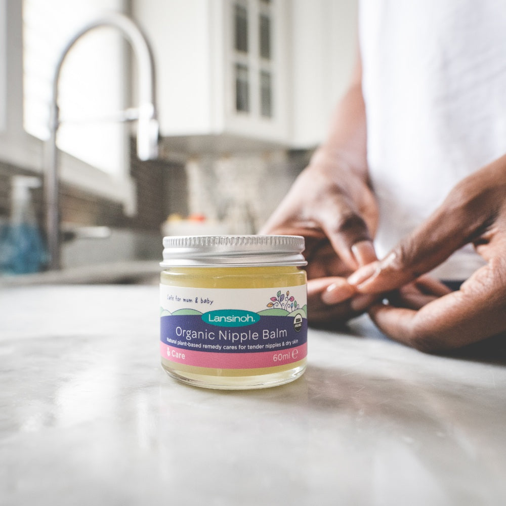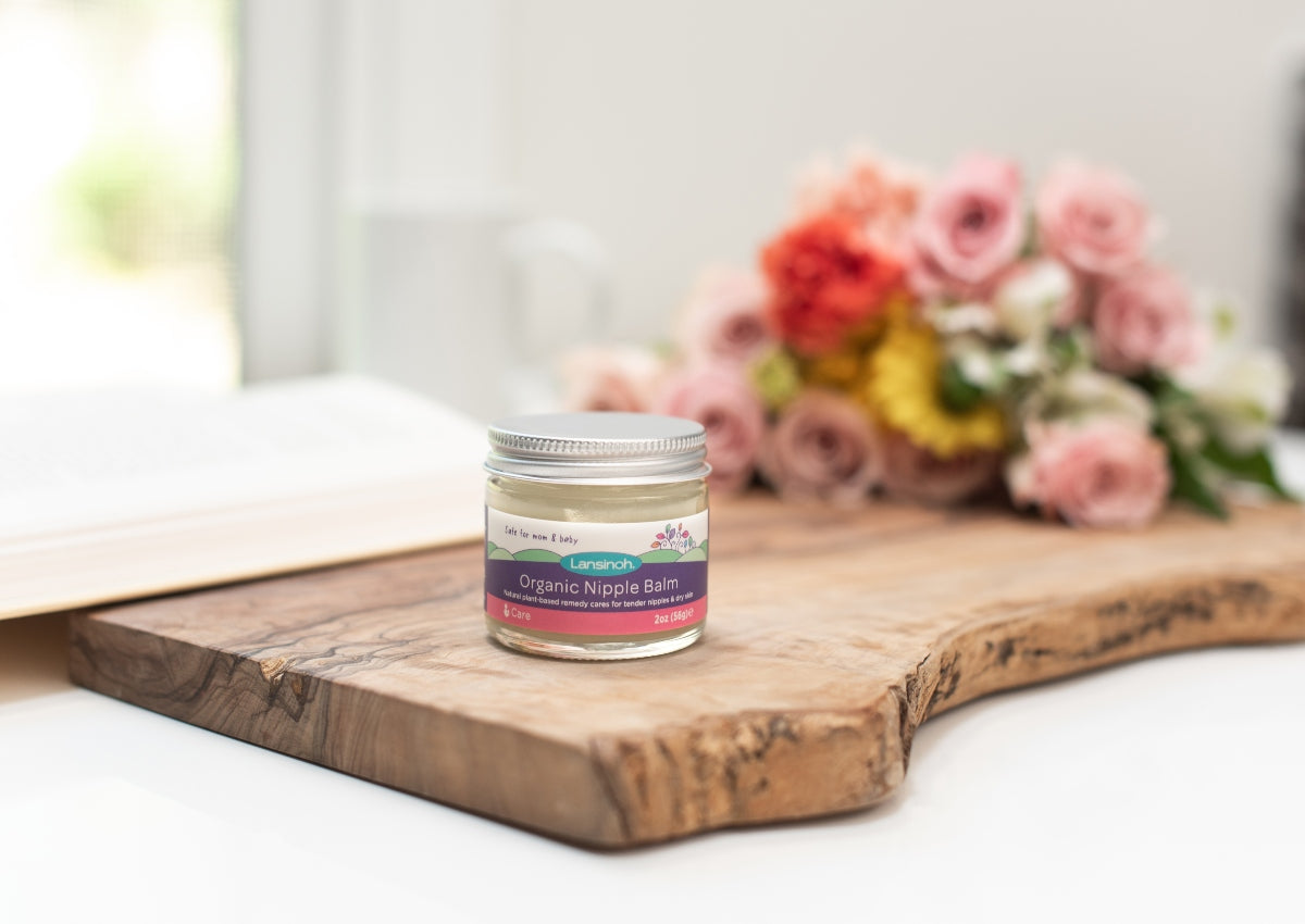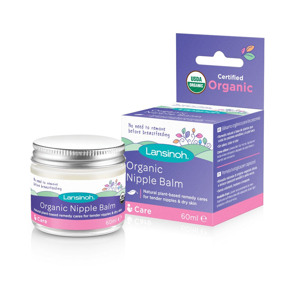 Desde los primeros días del bebé, el bálsamo para pezones orgánico puede aliviar la zona del pezón en caso de piel