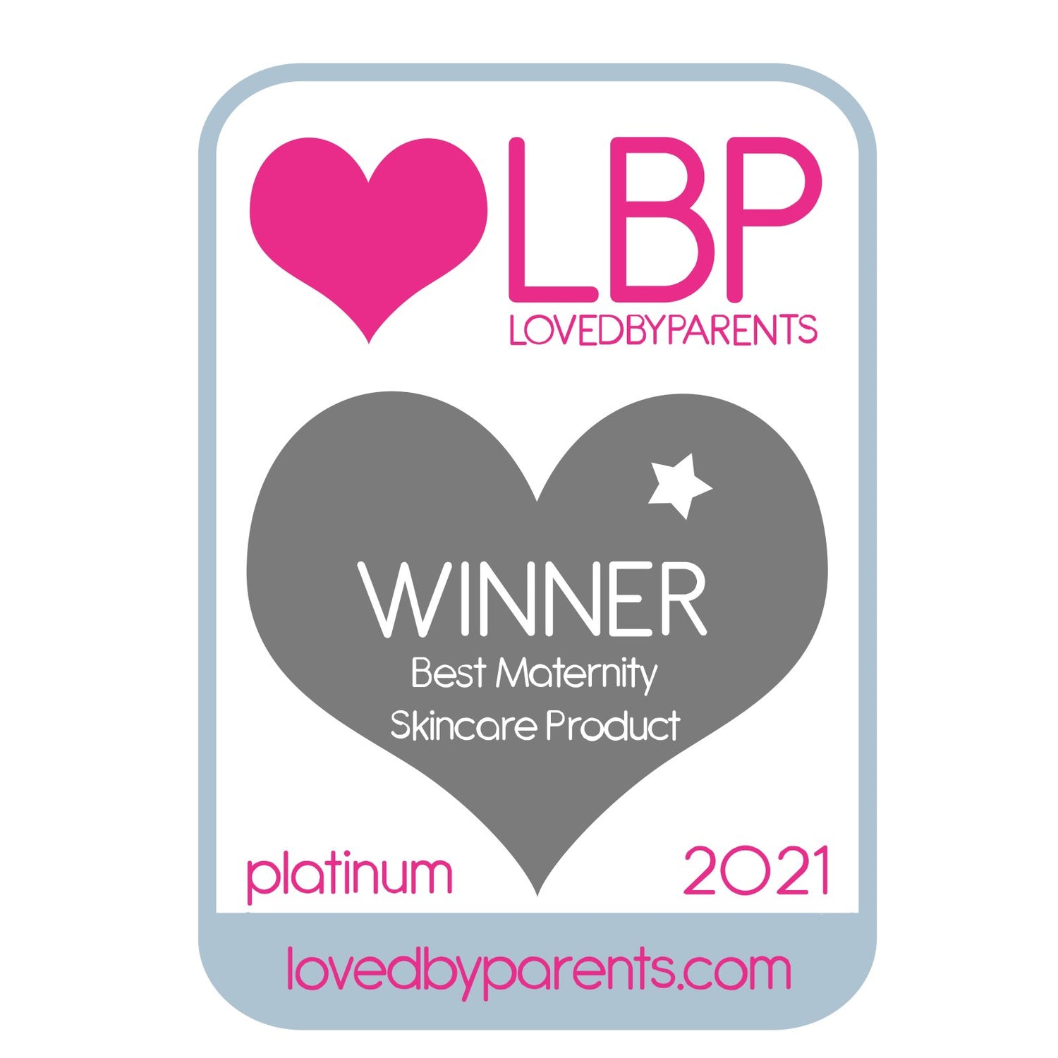- Platino en los premios Loved By Parents 2021 al mejor producto de cuidado de la piel durante la maternidad