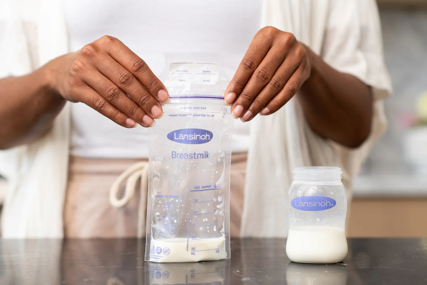 Las Bolsas de Almacenamiento de Leche Materna de Lansinoh son ideales para guardar la leche materna en la nevera o congelador.