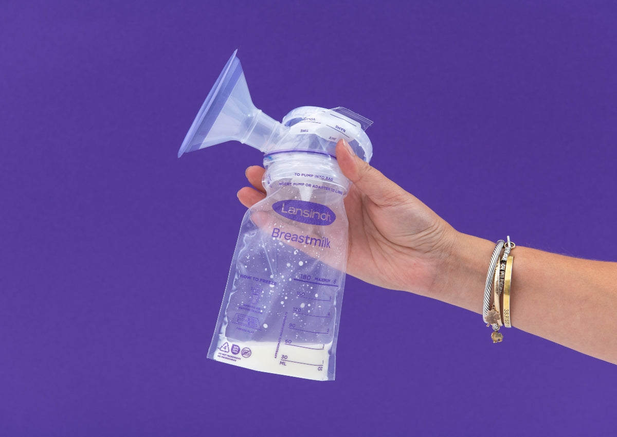 Puedes extraer la leche directamente en las bolsas de almacenamiento con cualquier sacaleches de Lansinoh. Simplemente asegúrate de que eliges nuestras bolsas para que sean compatibles con la extracción directa en la bolsa.