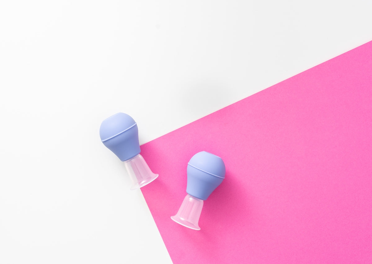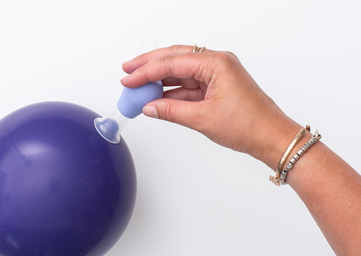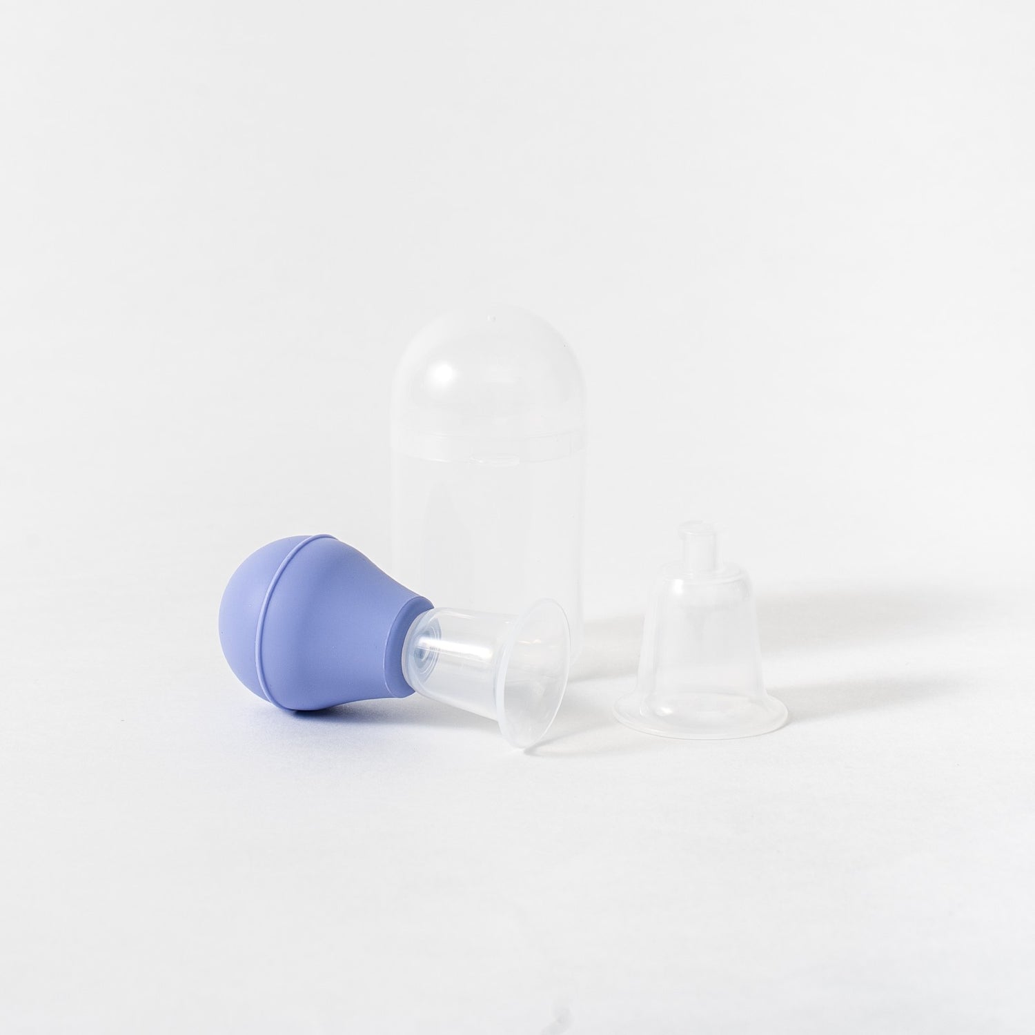 La sección de forma de embudo que contacta con el pecho está hecha de polipropileno, mientras que el bulbo morado está hecho de caucho natural.